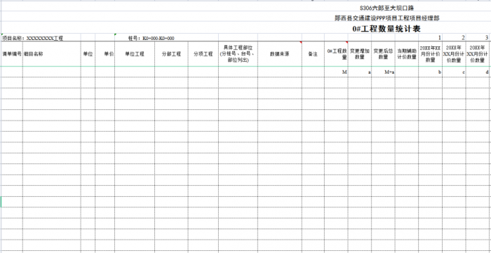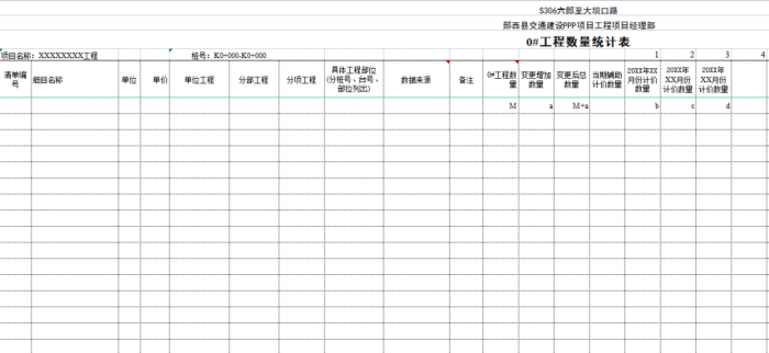 “0#”臺賬按單位、分部、分項工程劃分標準編制,可以將計量支付與質量檢驗評定有機結合起來,這樣可以使質檢、測量、實驗、計量等部門的內業(yè)工作都在同一個規(guī)則下進行,提高了整個項目(合同段)內業(yè)管理的效率。